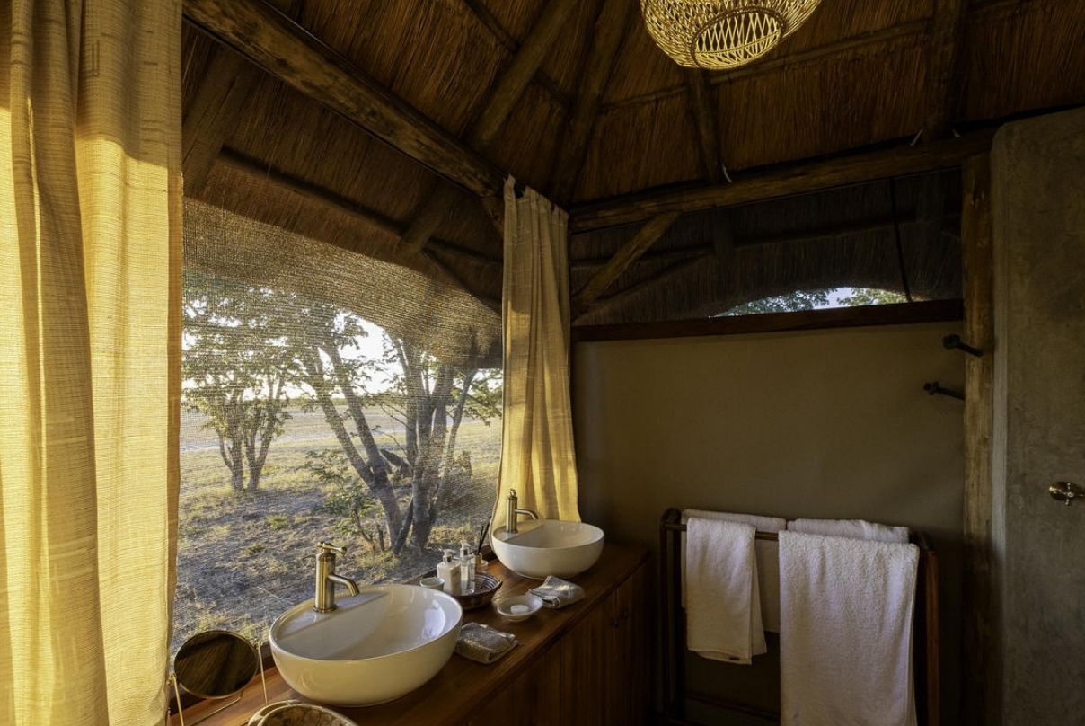 arge, spacious thatched chalets with canvas and gauze sides and ‘open-fronted’ views to the camp waterhole. Rooms are en-suite and recently refurnished with completely renovated bathrooms. Zimbabwean artworks decorate the walls and a shaded patio provides an additional peaceful place to while away the midday. Beds are covered by large mosquito nets and have overhead fans. All geysers, fans and lighting operate on solar power lowering our environmental footprint.