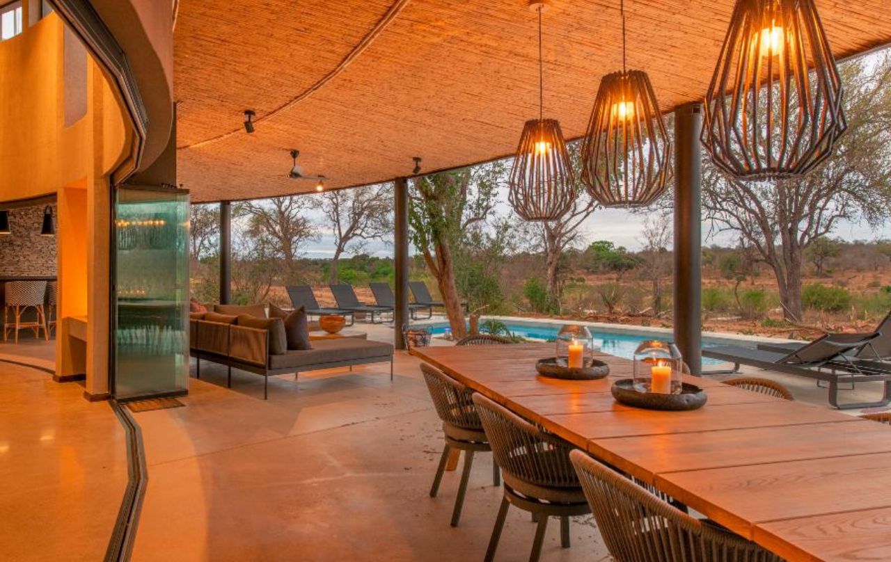 Mpfuvu Lodge is a fresh and contemporary interpretation of the traditional African safari lodge. The luxurious colour palette encompasses organic textures and materials, which are inspired by the African landscapes. The expansive outdoor living and entertaining space provides breath taking views overlooking the Sabie River and into the Kruger National Park.