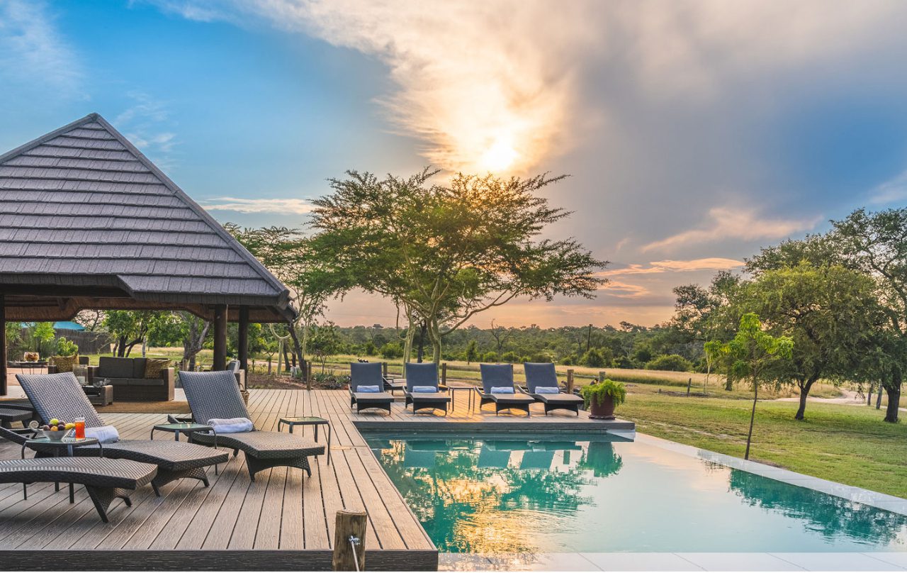 Nkorho Bush Lodge, located in the Sabi Sand Game Reserve, overlooks the vast African plains and offers an outdoor pool, providing a relaxed and authentic safari experience.